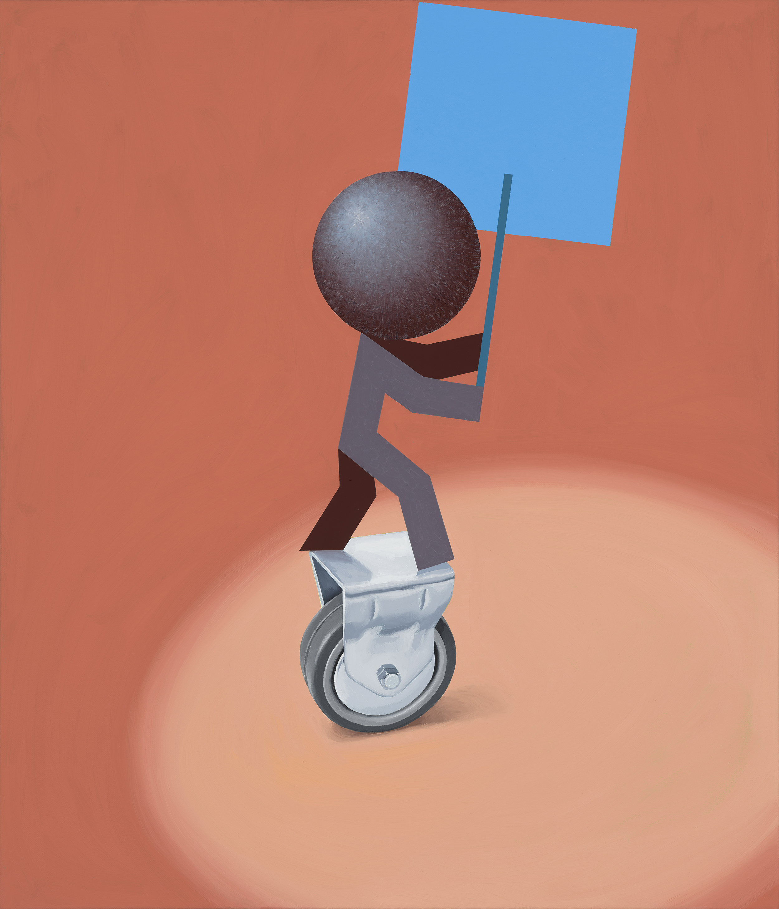 Põhimehed põhikujundite ning põhivärvidega III, õli ja akrüül lõuendil, 62 × 53 cm, 2024