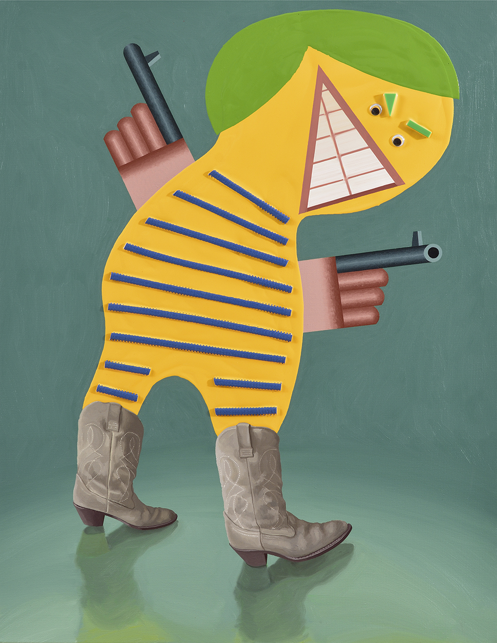Väike relvastatud värdjas, õli, akrüül ja alküüdvärv ning plastdetailid lõuendil, 90 × 70 cm, 2015
