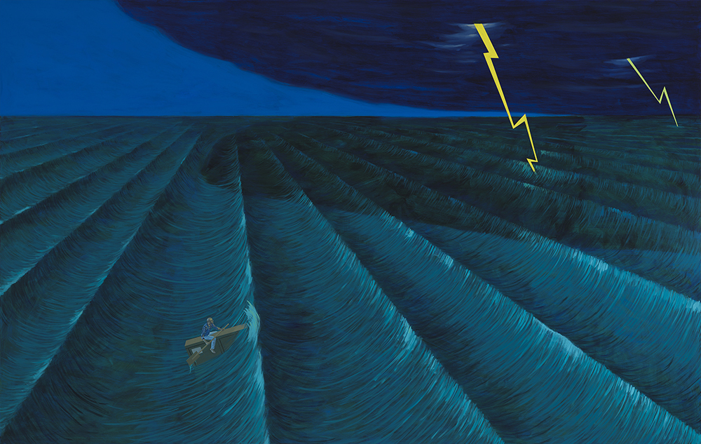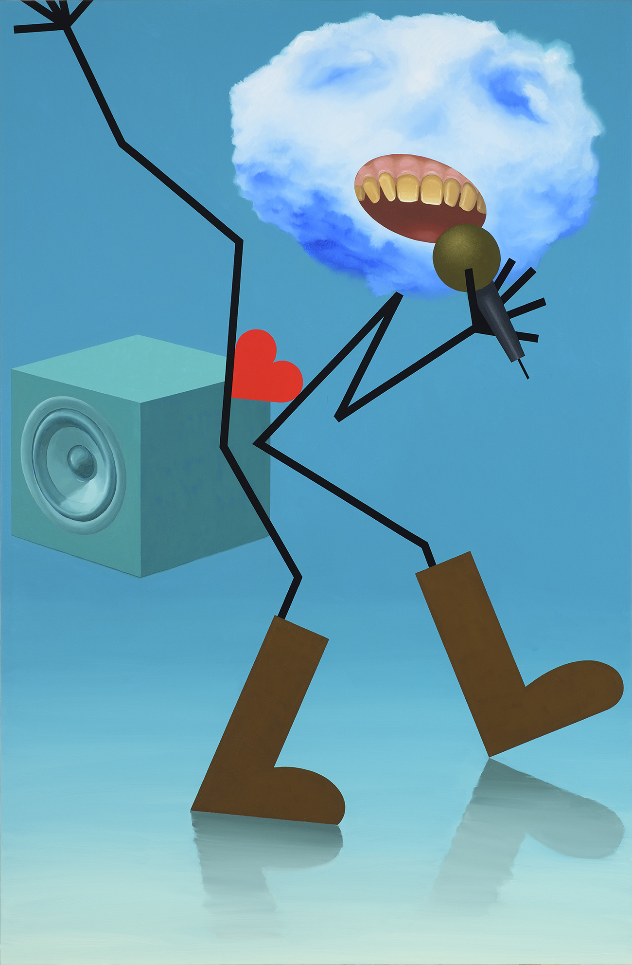 Karaoke üksikute südamete klubis, õli lõuendil, 141 × 93 cm, 2017