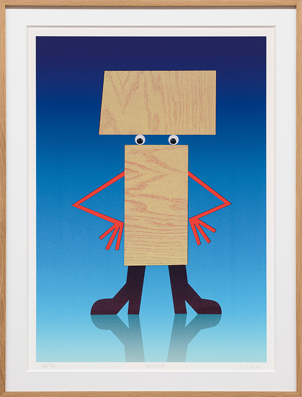 Woody, reljeeftrükk, 65 × 45 cm (raamita) 2021