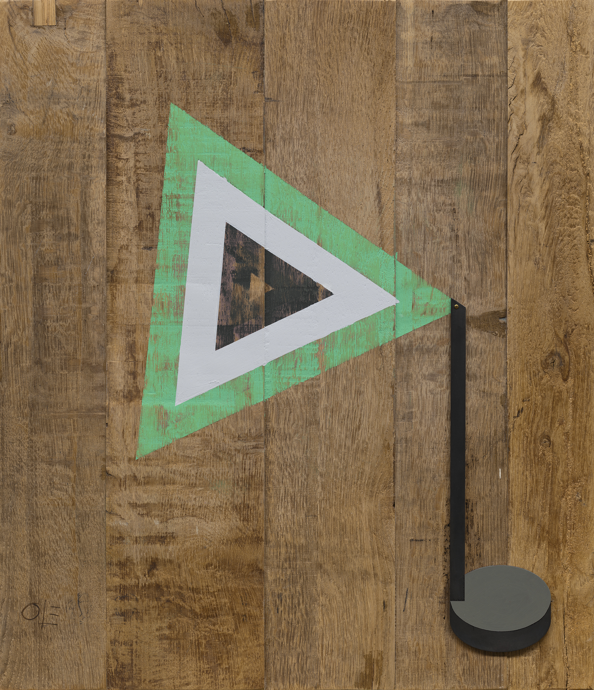 Esteetika I, õli, akrüül ja raud puidul, 70 × 60 cm, 2025