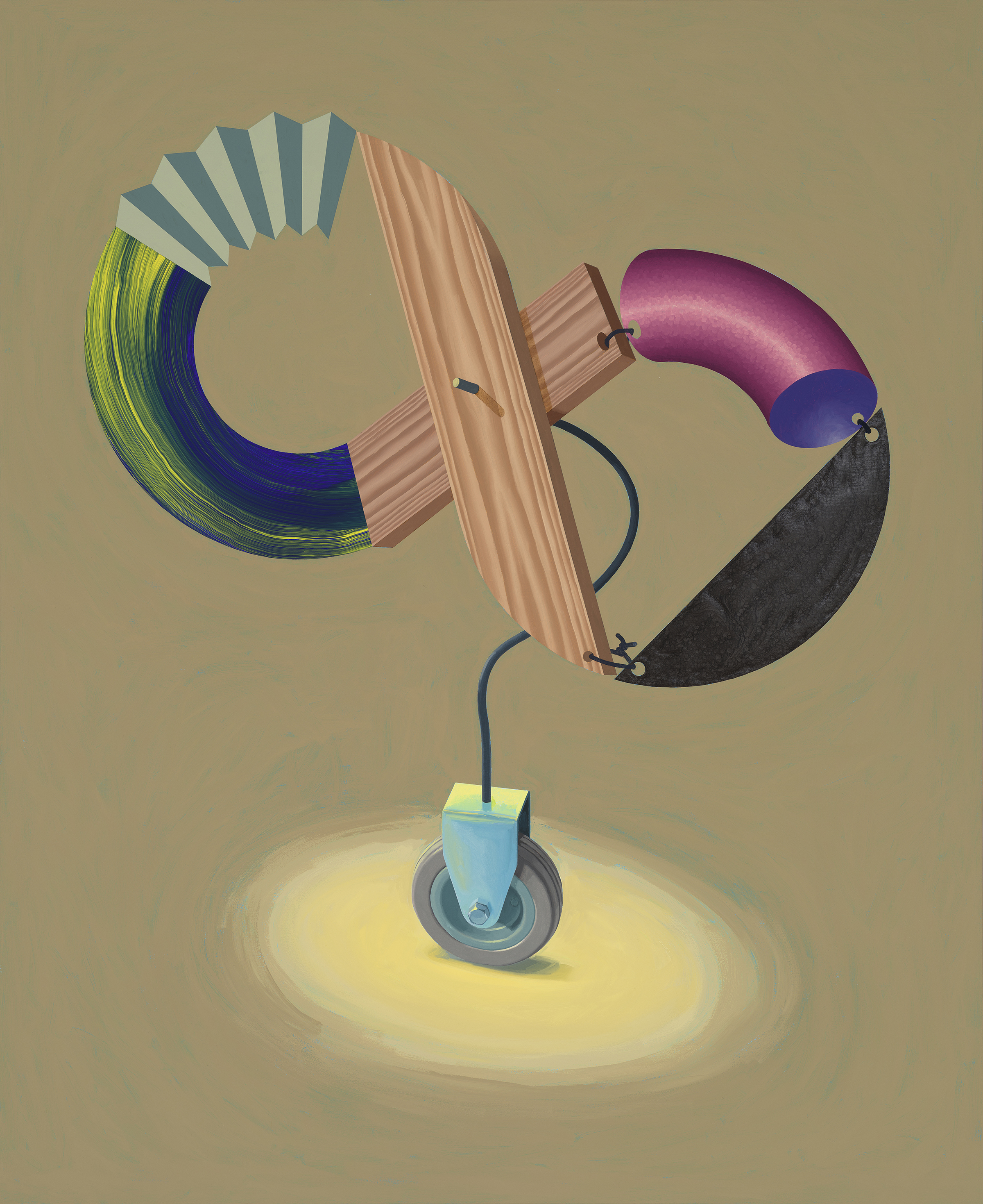 Põhimehed põhikujundite ning põhivärvidega III, õli ja akrüül lõuendil, 62 × 53 cm, 2024