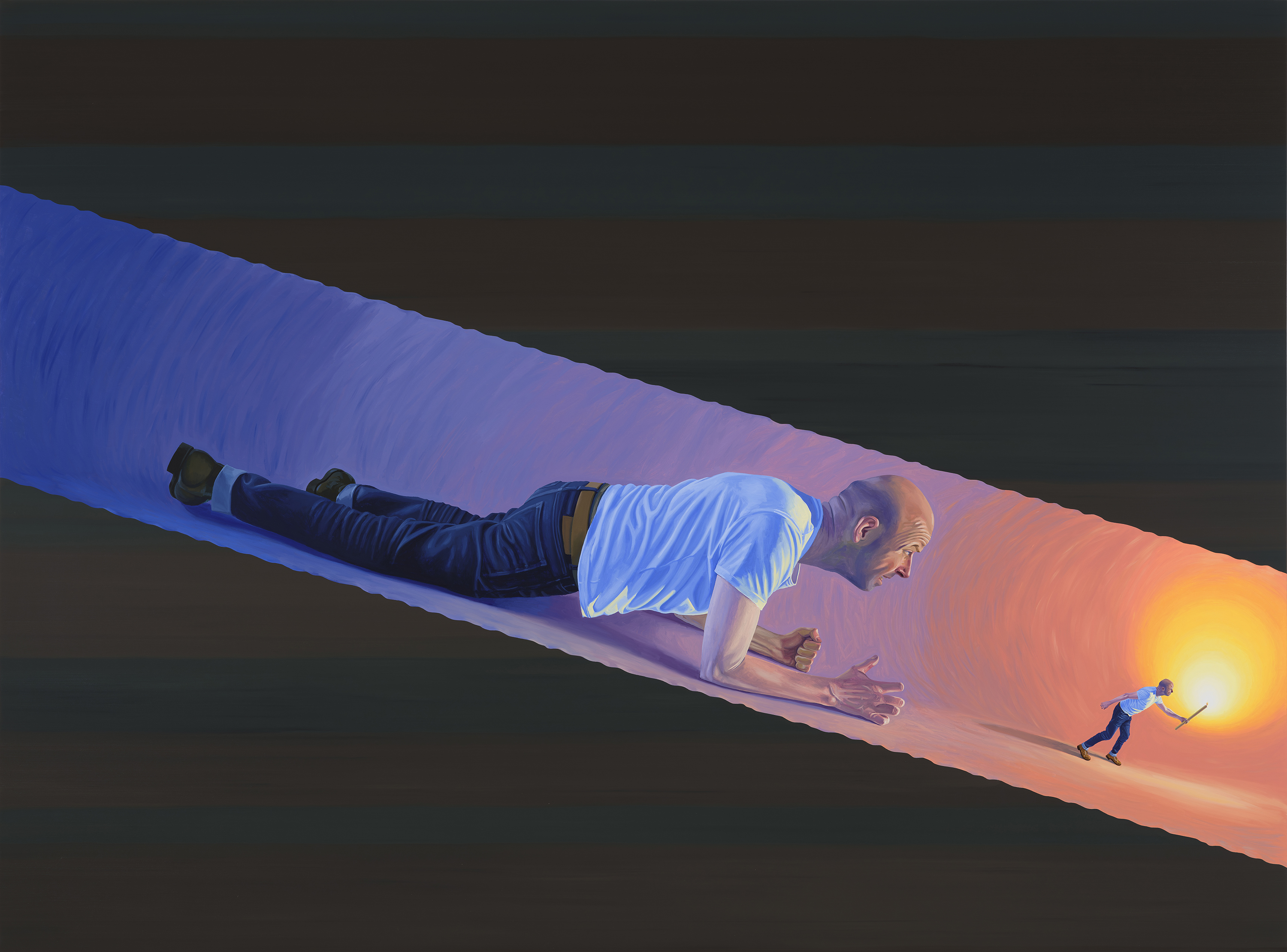 K & O lähevad taevasse, õli ja akrüül lõuendil, 400 × 260 cm, 2023