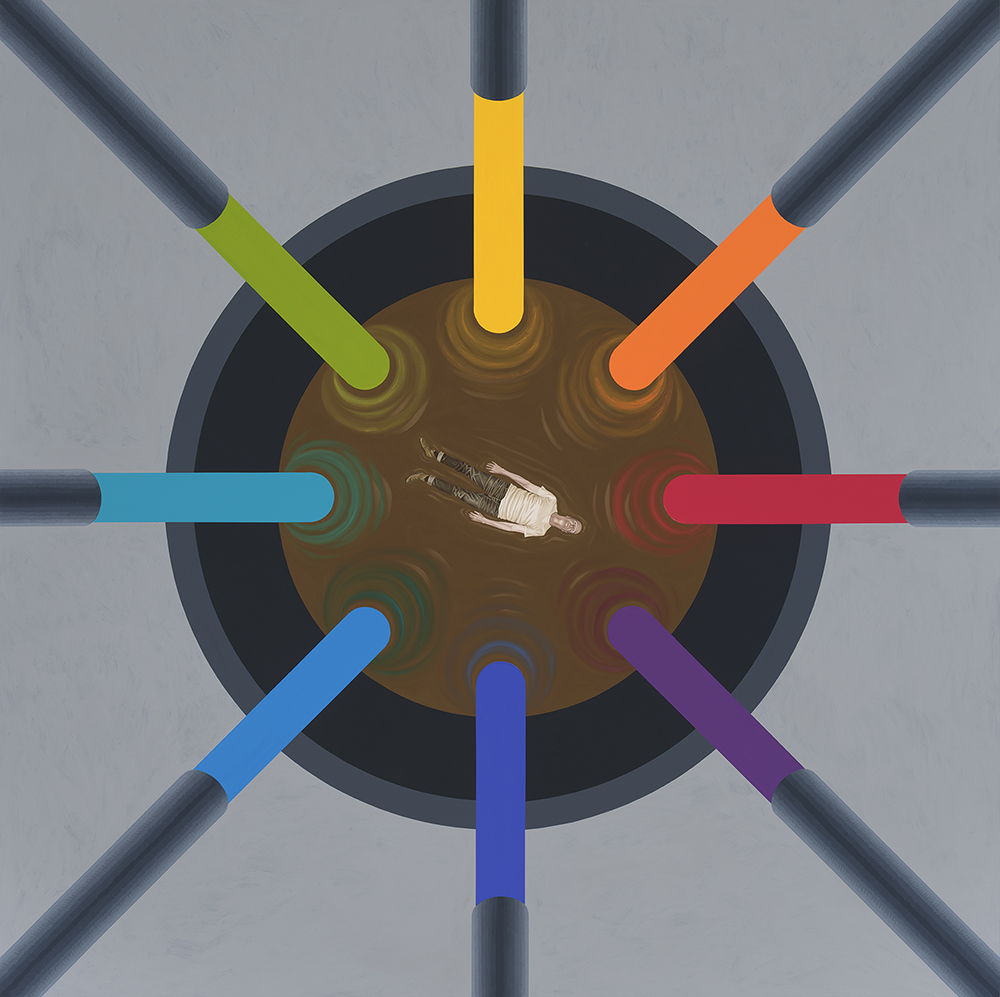 Kõikide võimaluste summa I, õli ja akrüül lõuendil, 180 × 180 cm, 2025