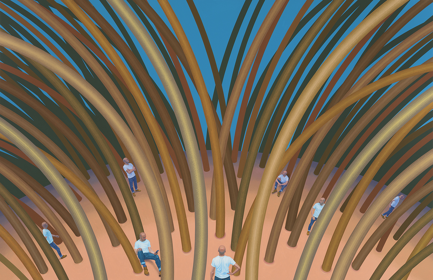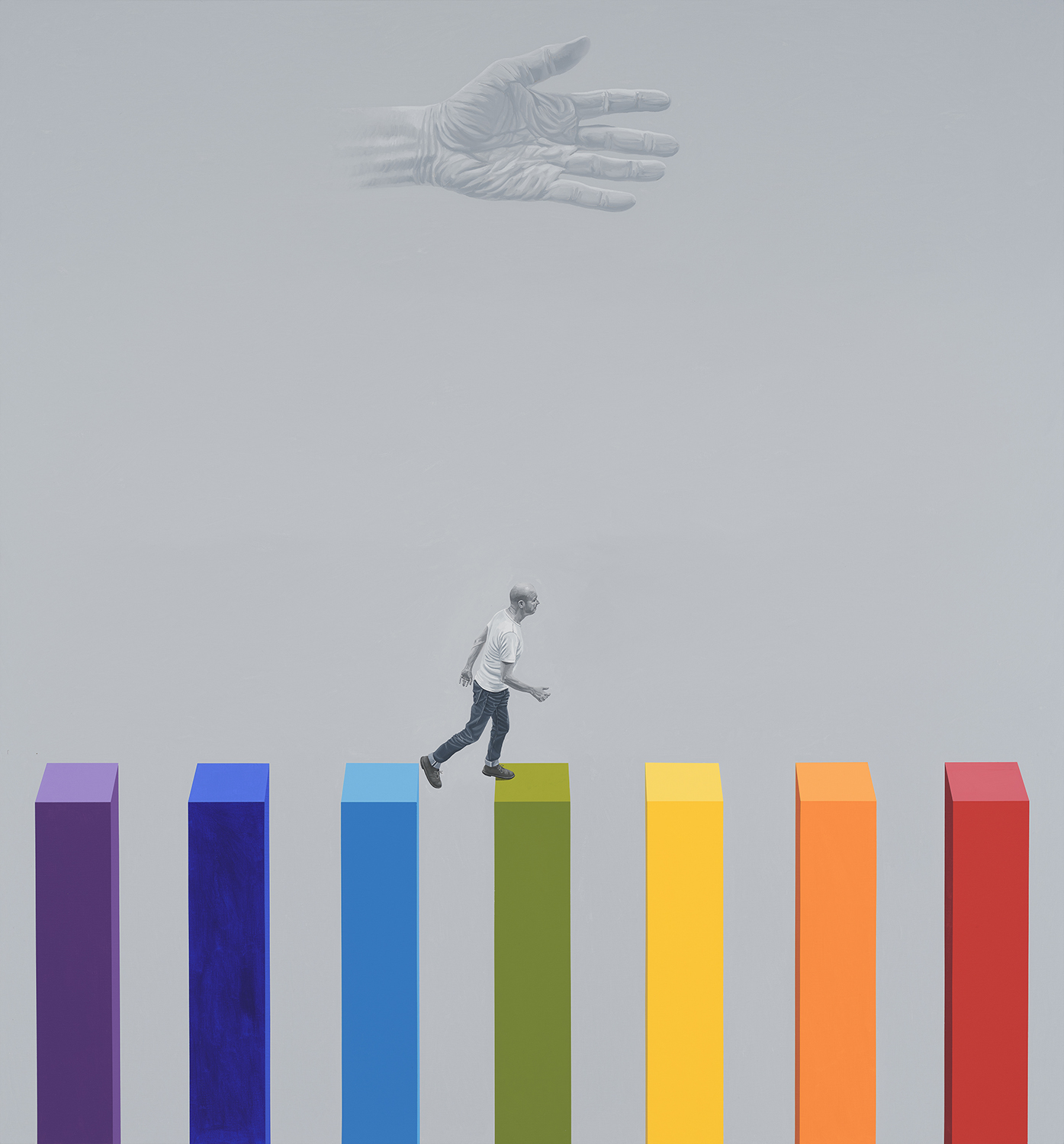 Käivad ajaga kaasas, õli ja akrüül lõuendil, 90 × 110 cm, 2024