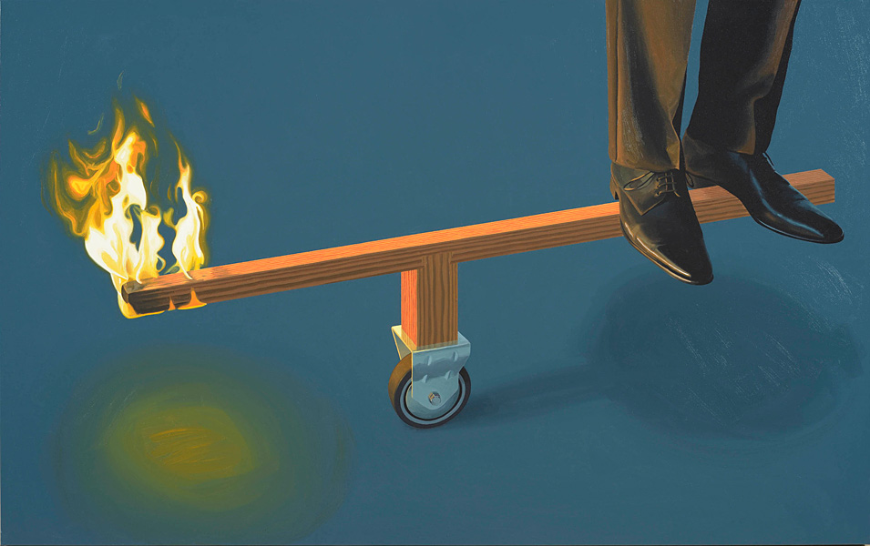Vaikelu eduka mehega, õli lõuendil, 100 × 160 cm, 2013