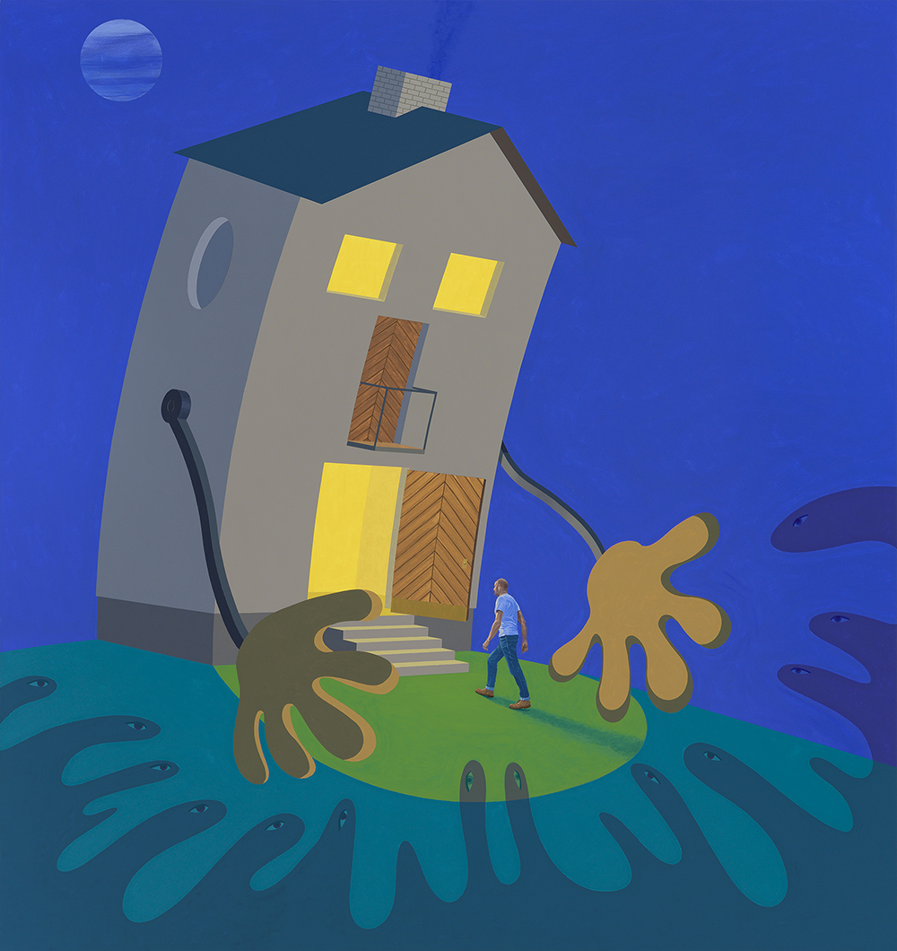 Rene Dali mullast maja, õli ja akrüül lõuendil, 80 × 80 cm, 2020