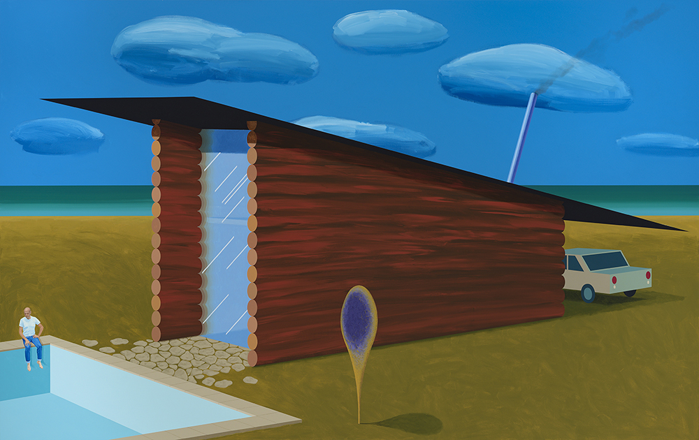 Maja katkise basseiniga, õli ja akrüül lõuendil, 190 × 300 cm, 2020