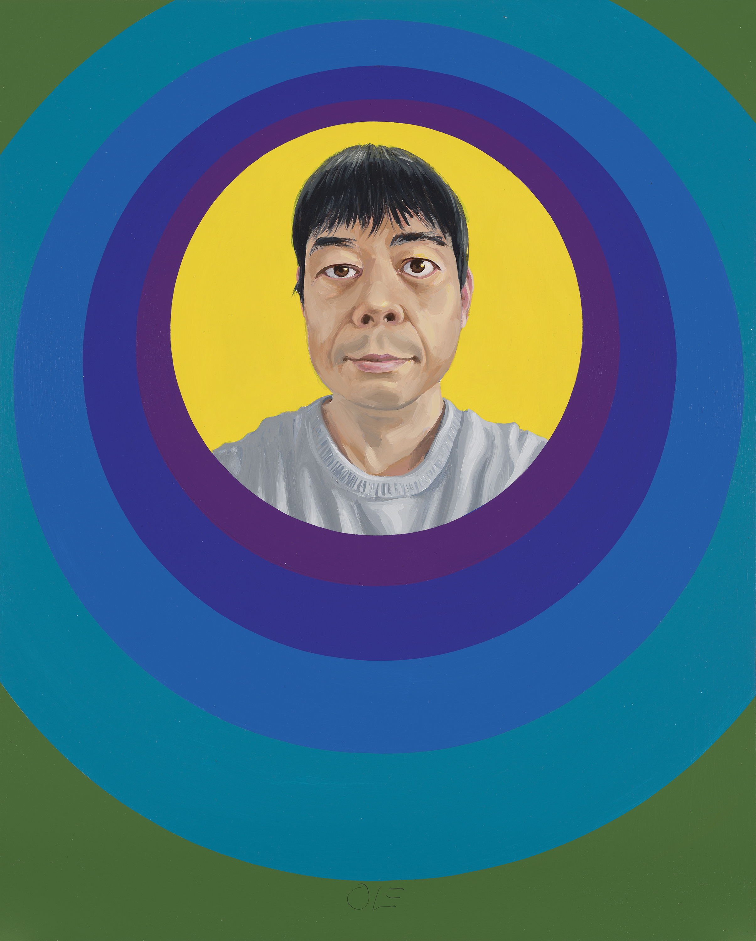 Noritsugu-san ja maagiline toru, õli ja akrüül HDF plaadil, 41 x 33 cm, 2025