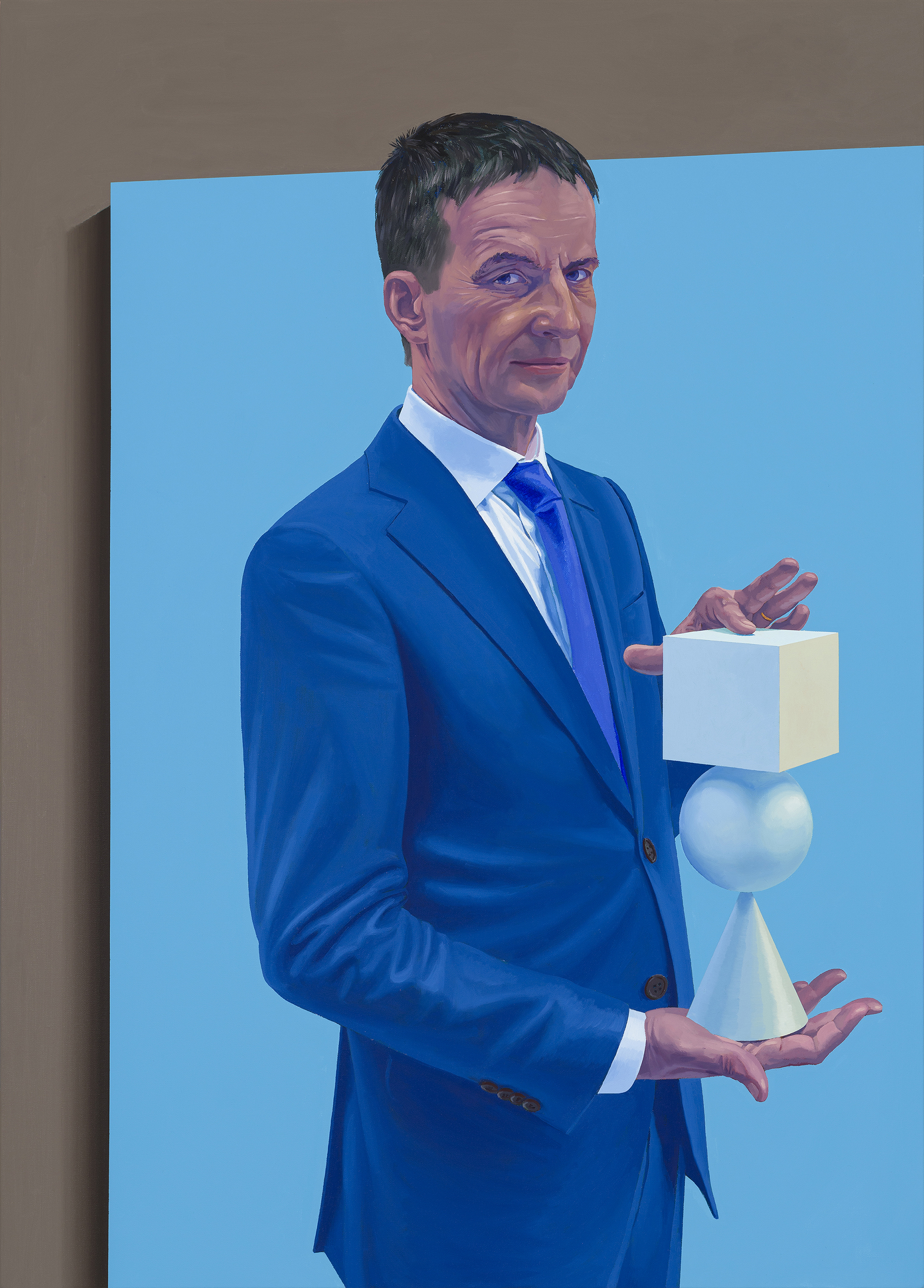 Ardo Hillar Hansson Eesti Panga presidendina, õli ja akrüül lõuendil, 105 × 75 cm, 2019